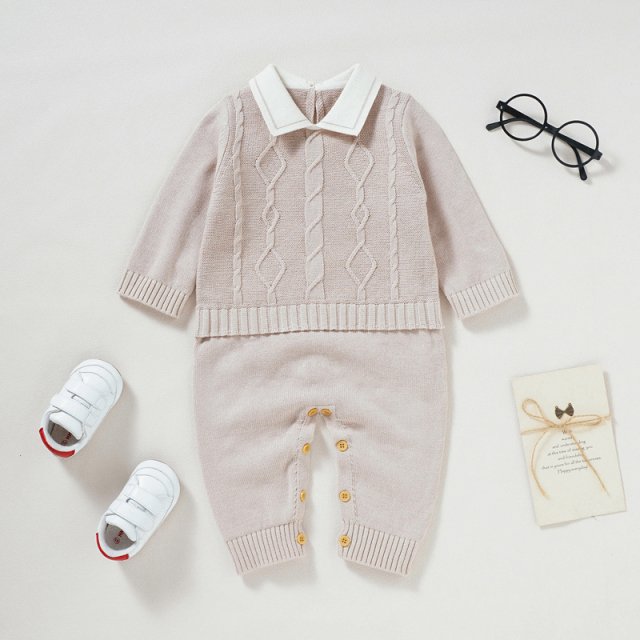 Newborn Cotton Knit Romper with Turn-Down Collar – Infant & Toddler One Piece